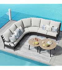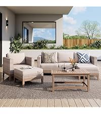 Transform your patio with this 5-piece rattan sectional sofa set, expertly crafted with handwoven light gray PE rattan and solid Acacia wood. The frame features a waterproof, weather-resistant teak finish that resists cracking, warping, and decay — built to last through every season. The beautifully distressed wood grain brings natural warmth and rustic elegance, perfect for enhancing your garden, balcony, poolside, or backyard oasis