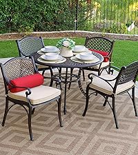 Aluminum Outdoor Dining Furniture Set for 4, Round Patio Table and Chairs for 4 with Cushions, Outdoor Furniture Set with Umbrella Hole, All-Weather Patio Dining Set